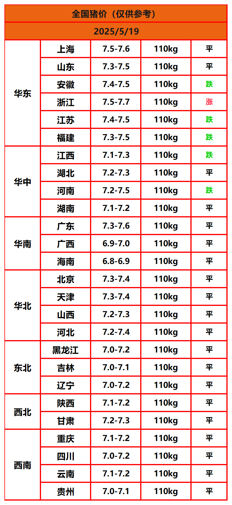今日猪价 | 2025年5月19日全国猪价行情一览表!